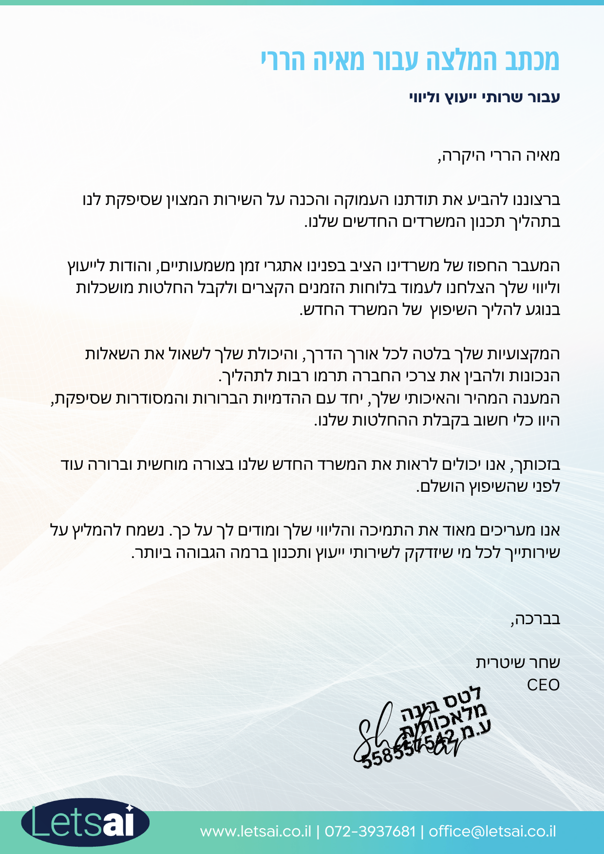 ליווי בפיתוח פתרונות מותאמים אישית, כמו נגרות מיוחדת, עיצוב נישות, מחיצות או פתרונות אחסון יצירתיים, כדי למקסם את השימוש בחלל ולשלב אלמנטים ייחודיים בהתאמה מלאה לצרכים האישיים.